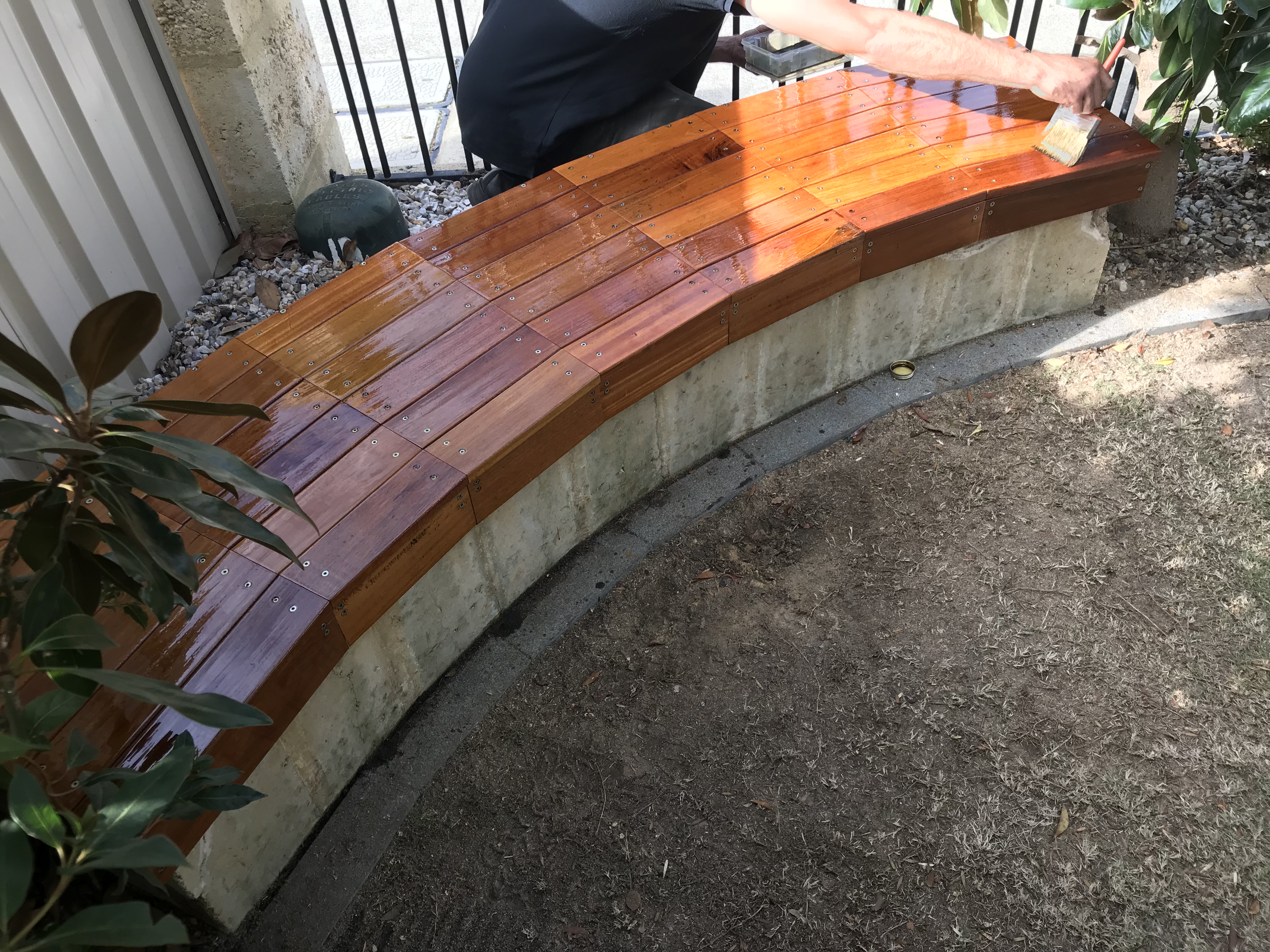 bench with varnished wood